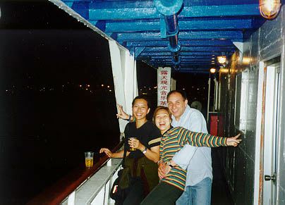 The three days almost got off to a disastrous start. We left the apartments a little late and got caught in an horrendous traffic jam, plus our taxi driver proved to be one of the few sane and/or careful drivers in Shanghai who proceeded toward the wharf on the Bund with what seemed undue caution. However given the tight timeframe we would have preferred the services of a kamikaze spirit with a highly developed death wish. This guy even insisted on not letting us off opposite the wharf but doing a U-turn, which took an extra few minutes. Finally with a sprint to the boat we got on board less than five minutes before the gangplank was hoisted.